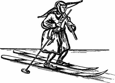 Рис. 16. Лапландский лыжник, вооруженный арбалетом, на гравюре XVII в.