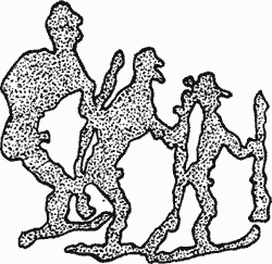 Рис. 29. Группа доисторических лыжников на наскальном изображении на реке Виг, недалеко от Залавруги, Россия.