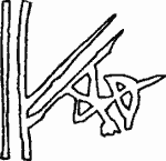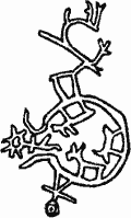 Рис. 32. Две стилизованных фигуры лапландских лучников на барабане.