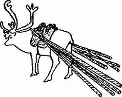 Рис. 36. Северный олень, везущий жерди во время миграции.