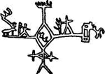 Рис. 43. Стилизованное изображение солнца на разукрашенном лапландском барабане.