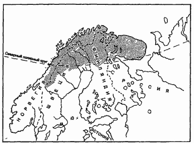 Рис. 1. Карта, на которой показано расселение лапландцев в настоящее время.